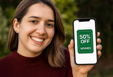 A VAMO é a ÚNICA empresa que oferece desconto e segurança no mesmo lugar. Além disso, a praticidade de pular filas.